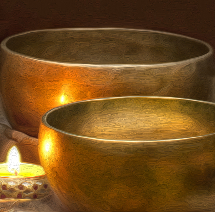 Gezielte Stimmenarbeit, Klangschalen, Stimmgabeln und Bija-Mantras harmonisieren Chakren und feinstoffliche Felder.
